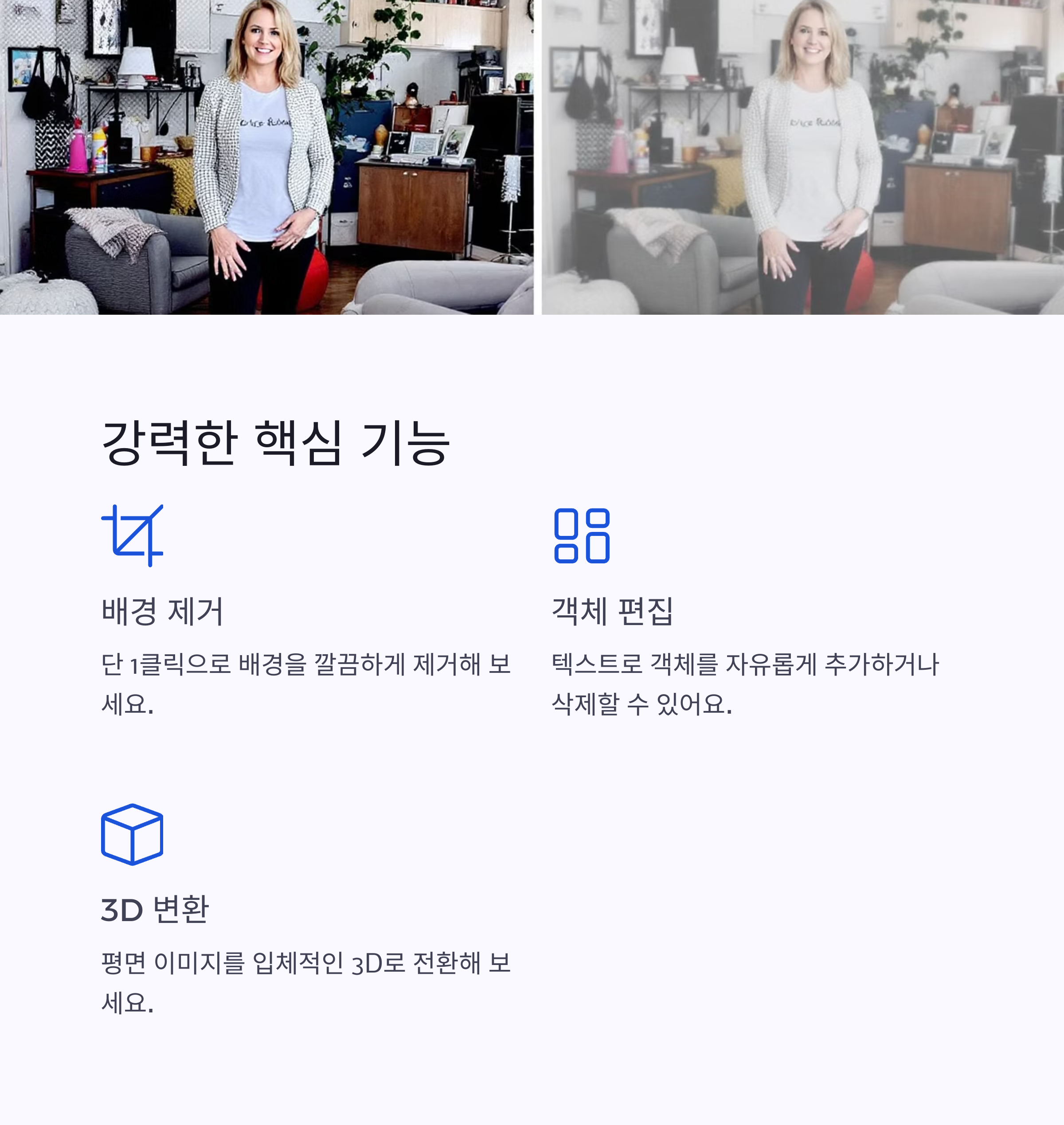 | 배경 제거 | 클릭 한 번으로 복잡한 배경을 깔끔하게 제거 |