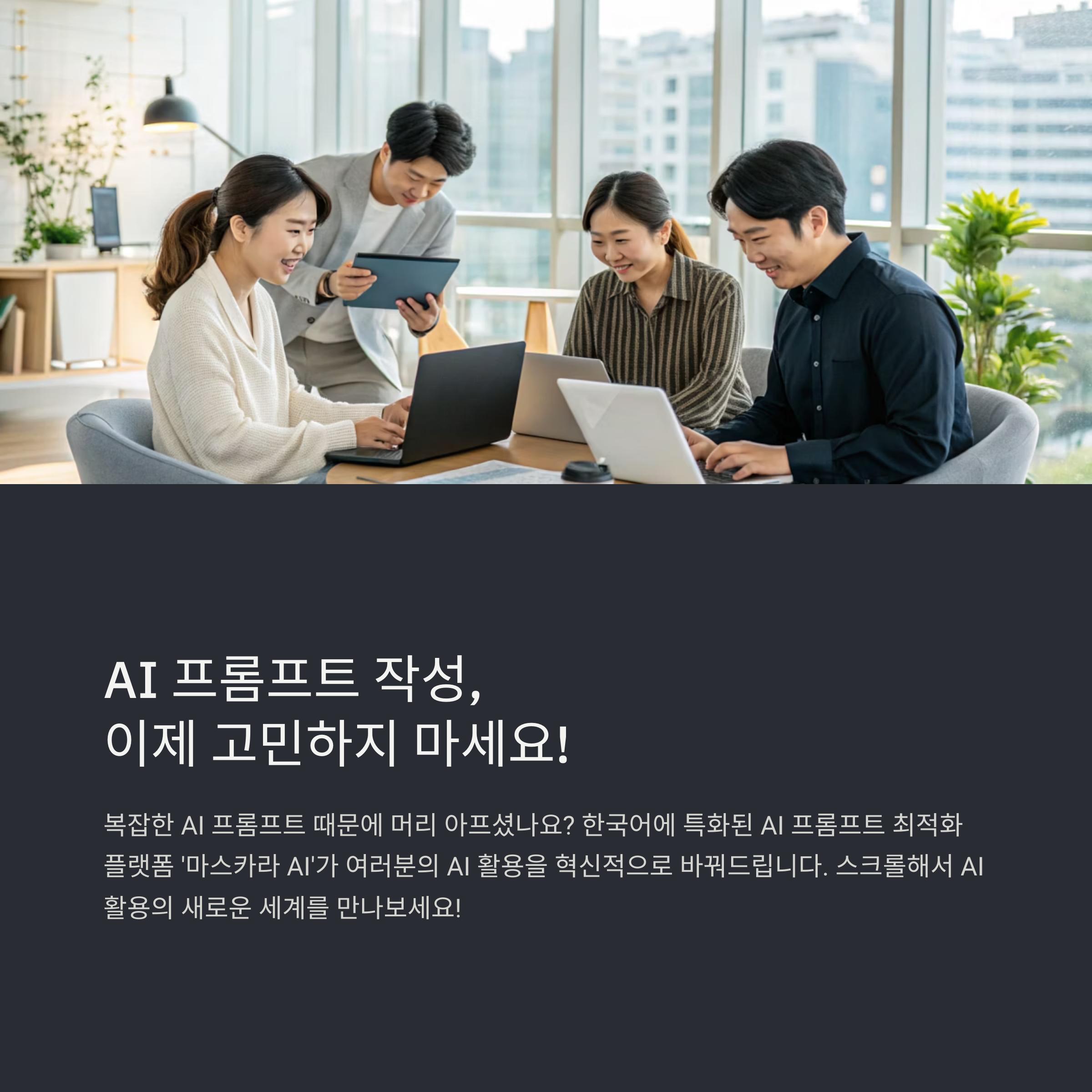 아직도 복잡한 프롬프트 때문에 머리 아프신가요? 마스카라 AI 하나면 AI 활용이 이렇게 쉬워집니다!