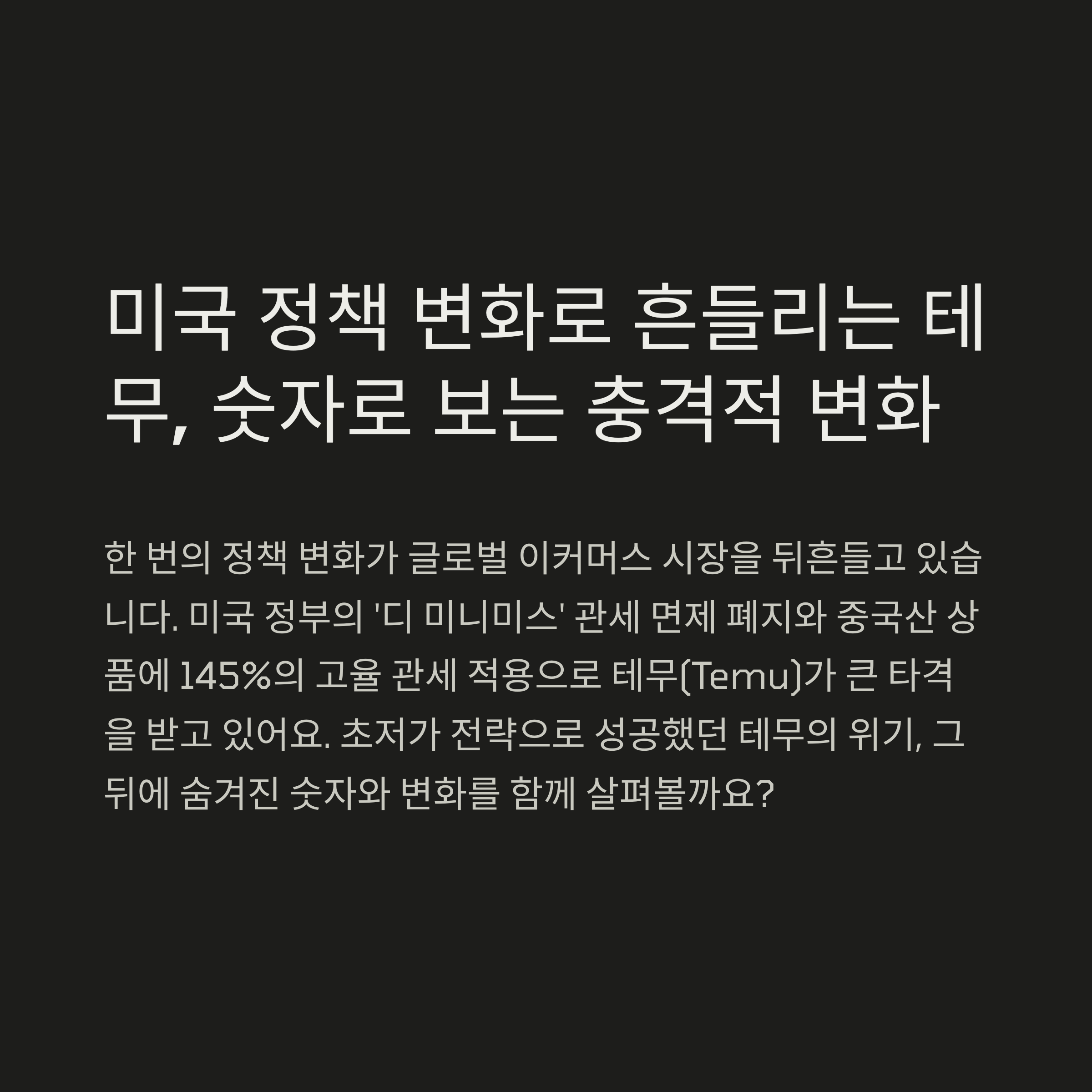 미국 정부가 디 미니미스 관세 면제 제도를 폐지하고, 중국산 상품에 고율 관세를 부과하면서 Temu의 핵심 비즈니스 모델이 흔들리기 시작했습니다.