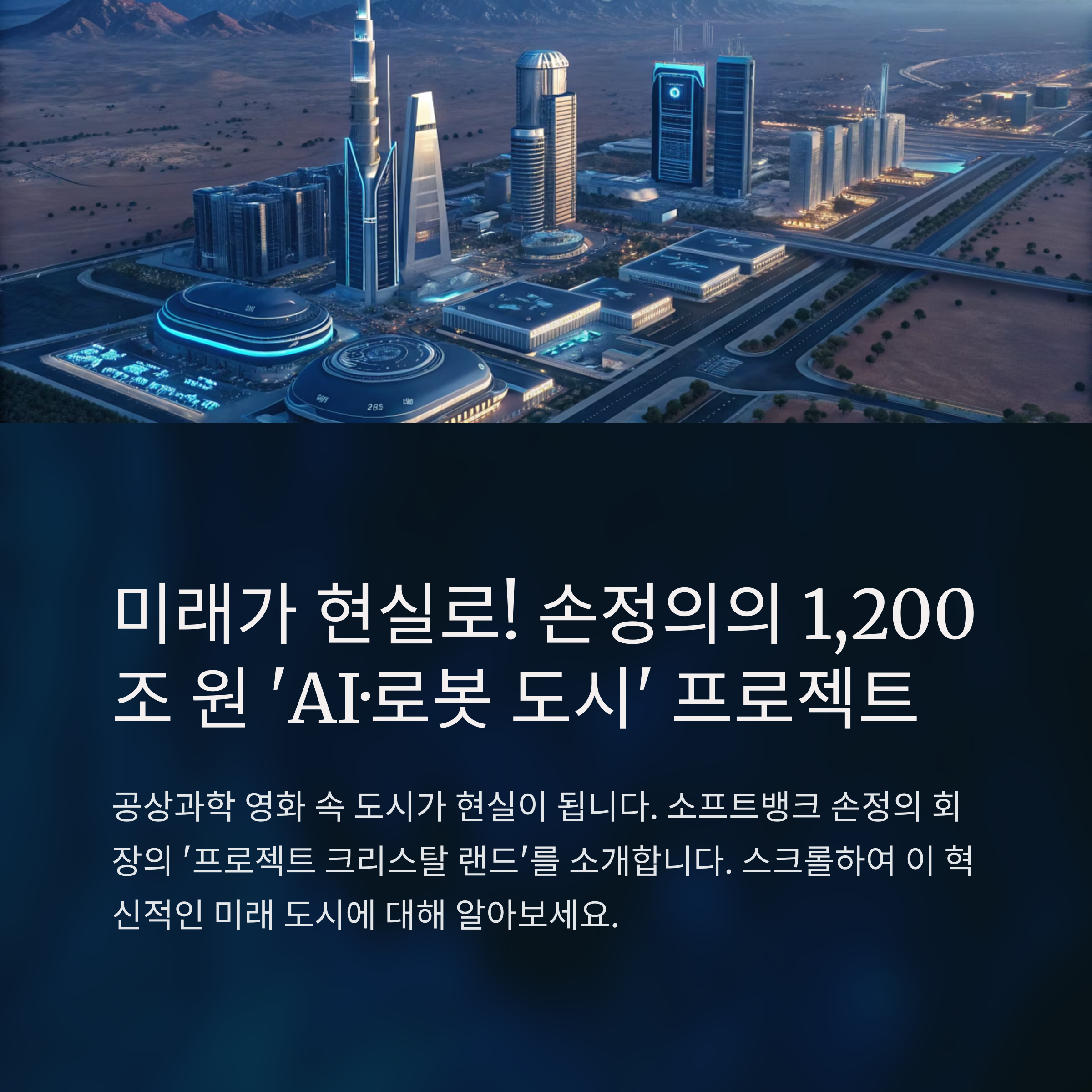안녕하세요, 미래 기술에 늘 관심이 많은 저예요. 며칠 전 뉴스를 보다가 소프트뱅크의 손정의 회장이 미국 애리조나에 상상을 초월하는 ‘AI·로봇 도시’를 짓겠다고 선언한 기사를 봤습니다. 한화로 무려 1,200조 원이 넘는 규모라니, 실감이 안 나더라구요. 그러고 보니 어릴 적 봤던 공상과학 영화 속 도시가 이제 현실이 되는 건가 싶어서 설레기도 했고요. 그래서 오늘은 이 어마어마한 프로젝트, '크리스탈 랜드'가 도대체 어떤 곳이 될지 저 나름대로 정리해봤어요.