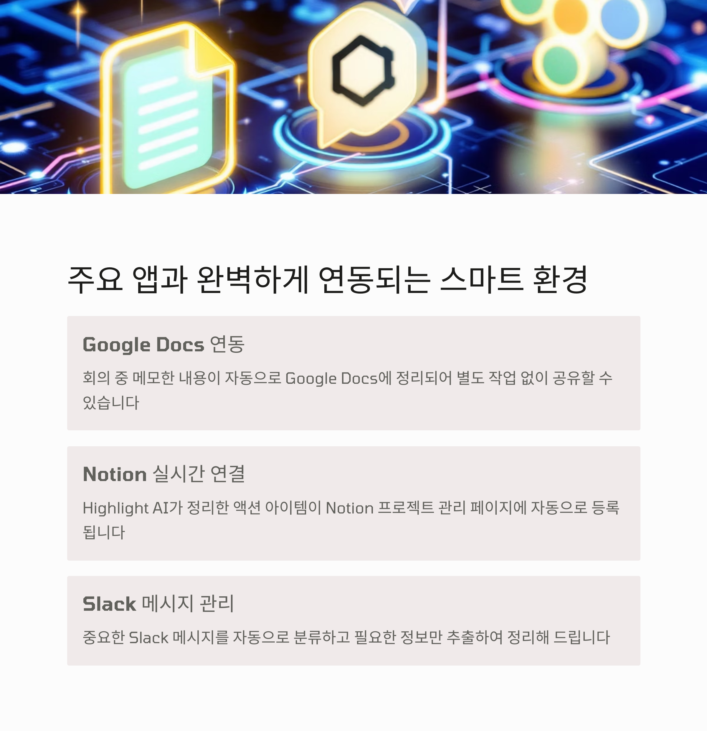 태그: Highlight AI, AI 비서, 업무 자동화, 회의 노트, 문서 자동화, 생산성 향상, 개인정보 보호, Notion 연동, Google Docs 활용, Slack 자동화