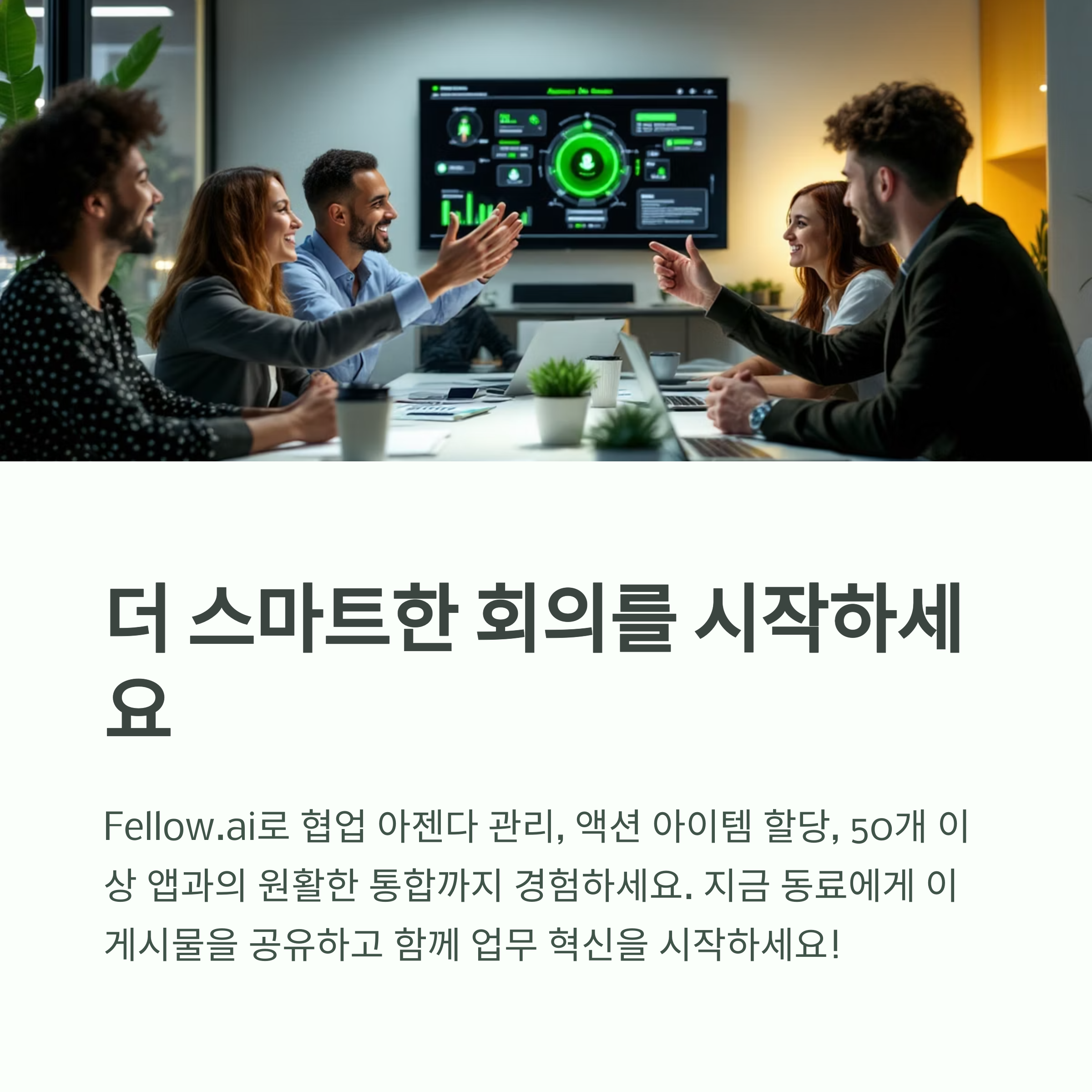 fellow ai, 회의 비서, ai 회의 요약, 회의 기록 자동화, 팀 생산성, 원격 회의 도구, 회의 관리, crm 연동, 업무 자동화, 협업 툴