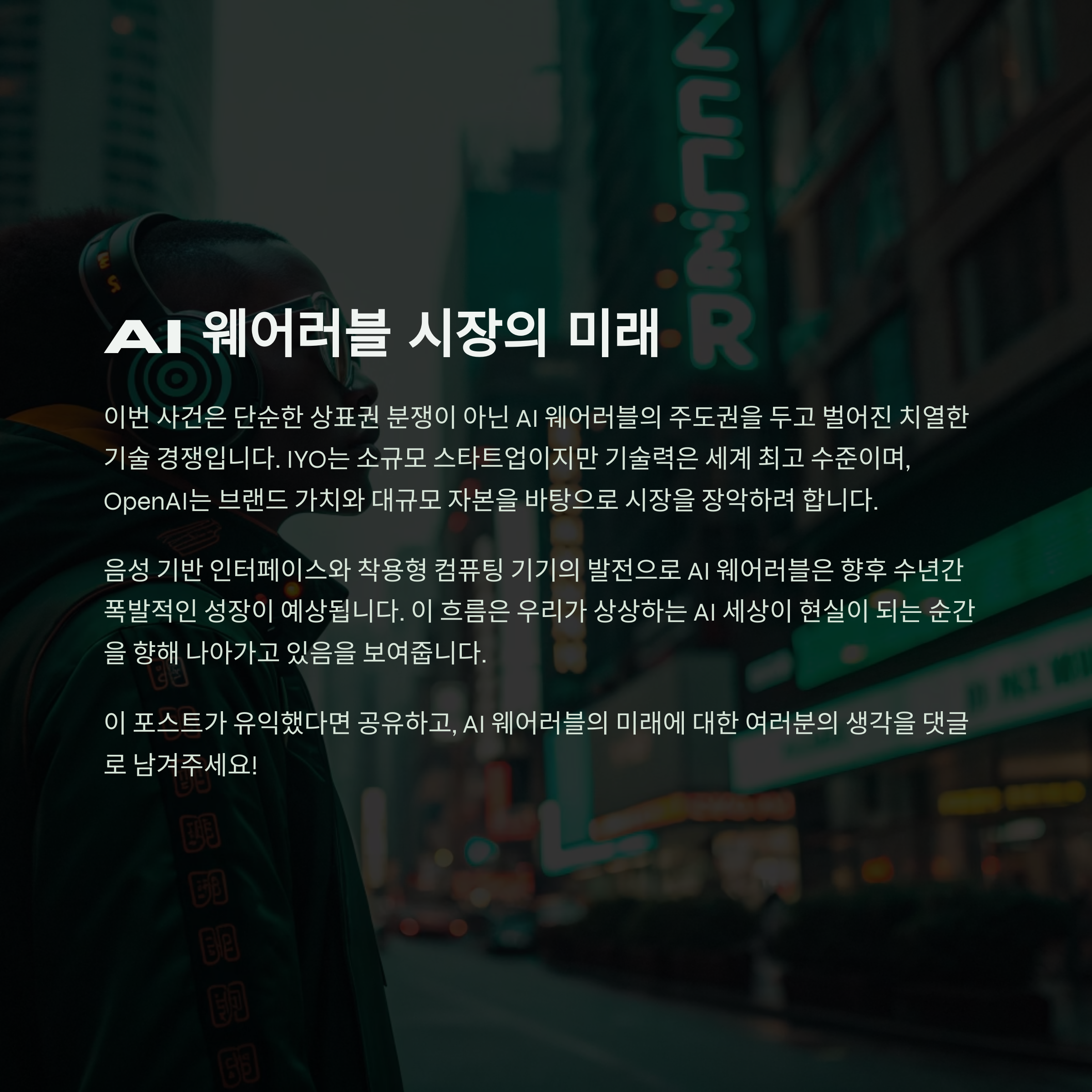 이번 사건은 단순한 상표권 분쟁으로 보이지만, 실제론 **AI 웨어러블의 주도권**을 두고 벌어진 치열한 기술 경쟁입니다. 그 파장은 다음과 같이 정리할 수 있어요.