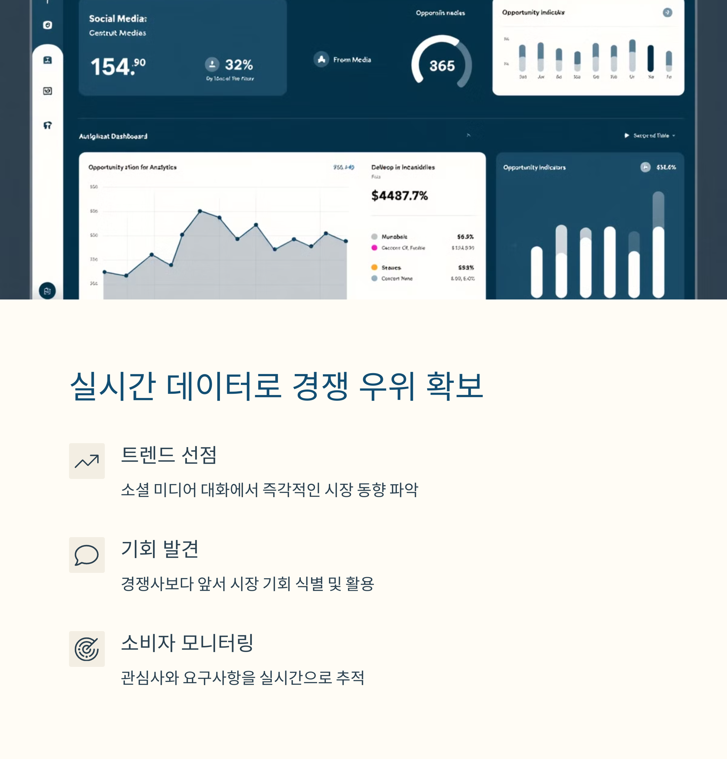 | 실시간 데이터 분석 | 온라인 트렌드와 소비자 대화를 실시간으로 분석 |