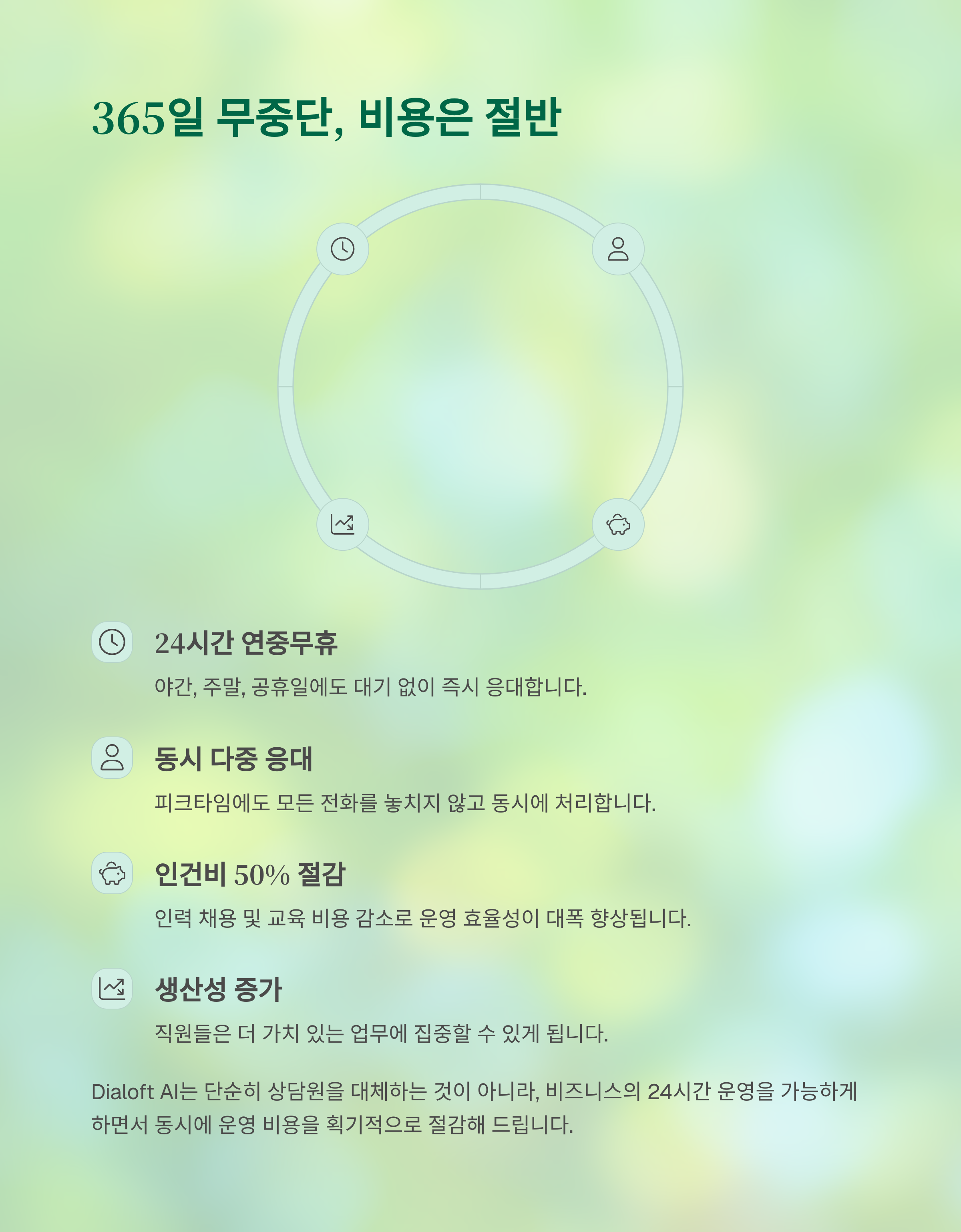 | 항목 | Dialoft AI | 일반 콜센터 |