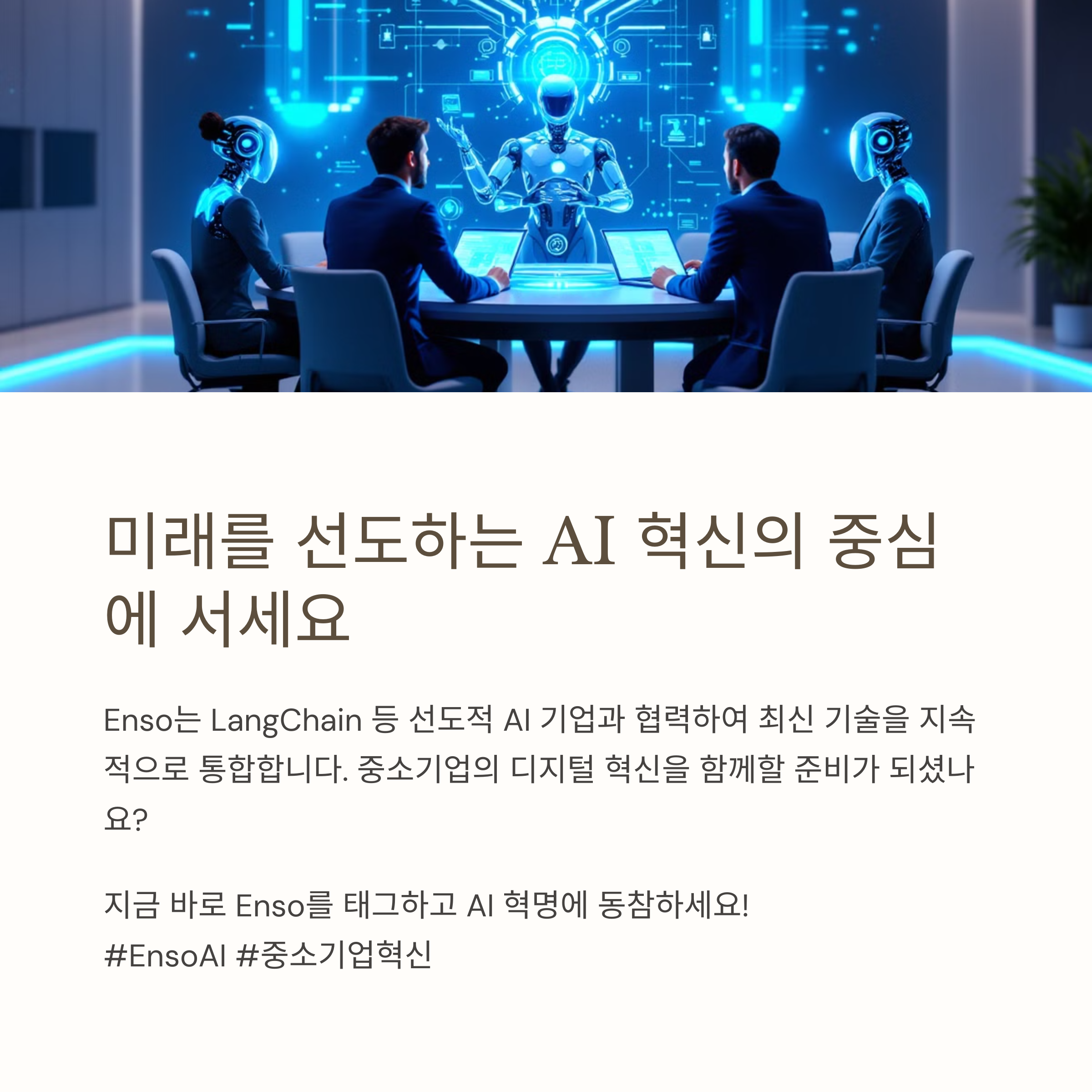 "반복 작업에 지치셨나요? 이제 AI가 대신합니다. Enso와 함께 비즈니스의 판을 바꿔보세요!"