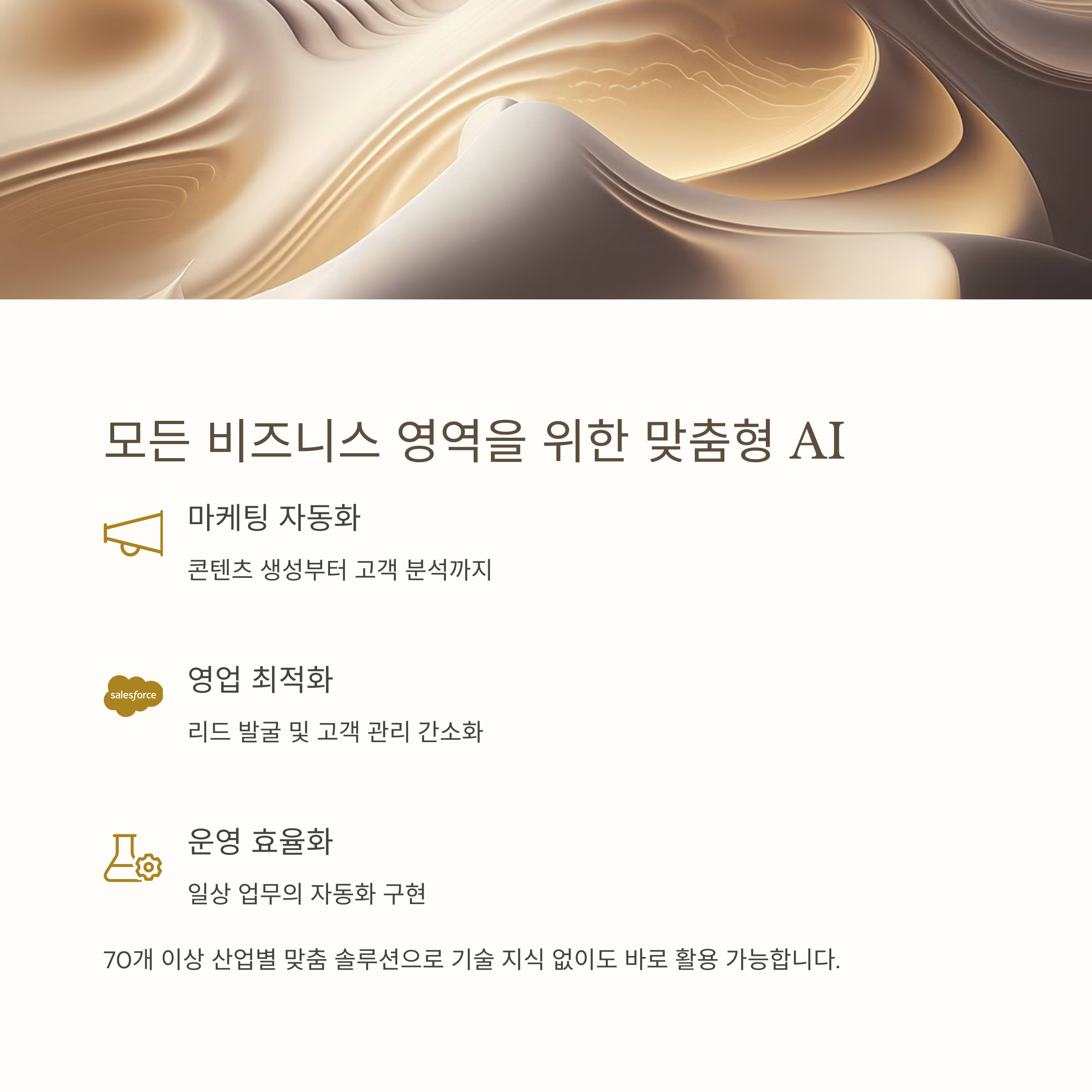 | 산업별 맞춤 솔루션 | 70개 이상의 산업을 지원하는 전문화된 에이전트 세트 |