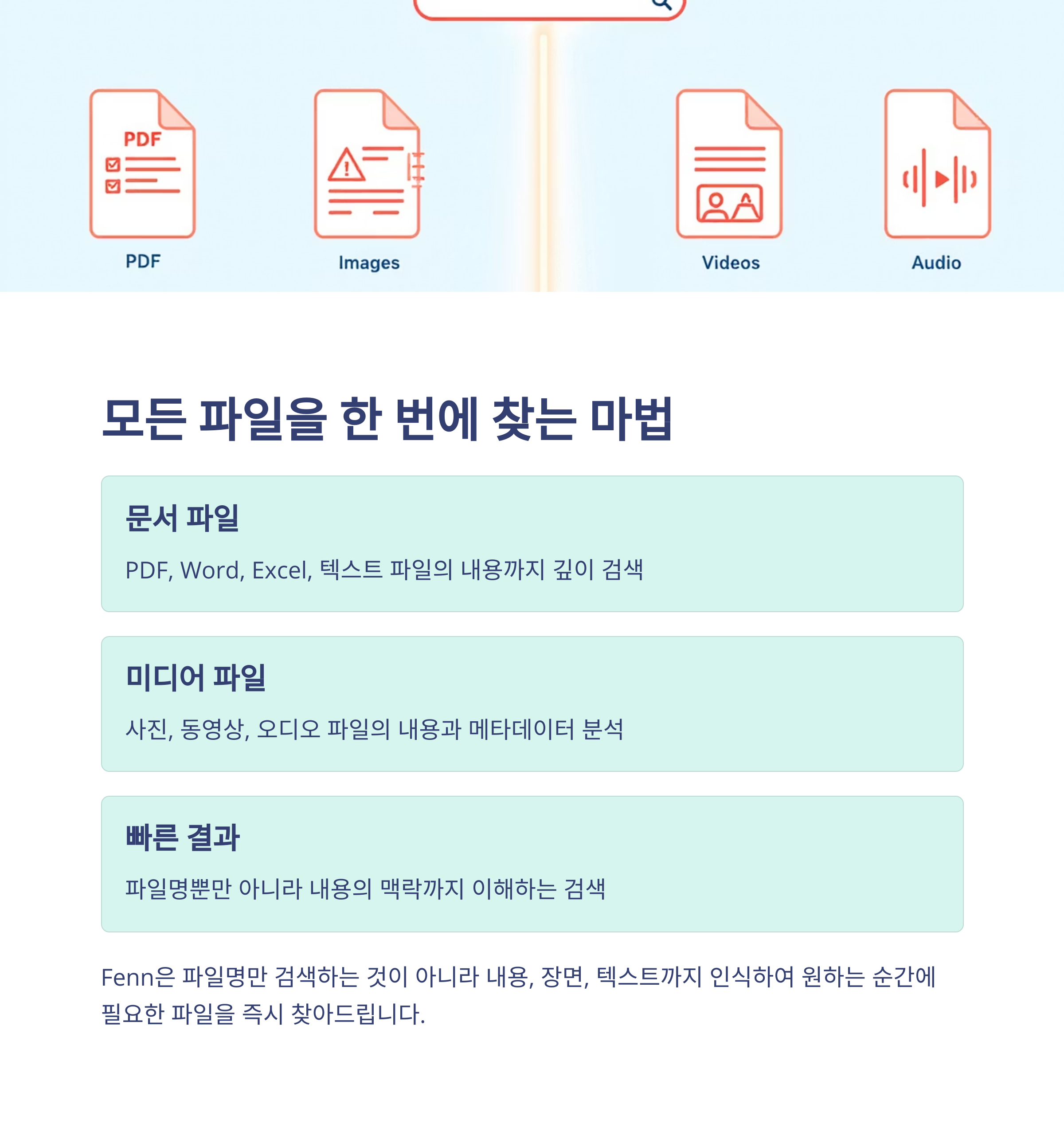 파일이 너무 많아서 필요한 걸 찾기 어려우셨던 적 있으시죠? 지금부터는 다릅니다. Fenn이 있으니까요!