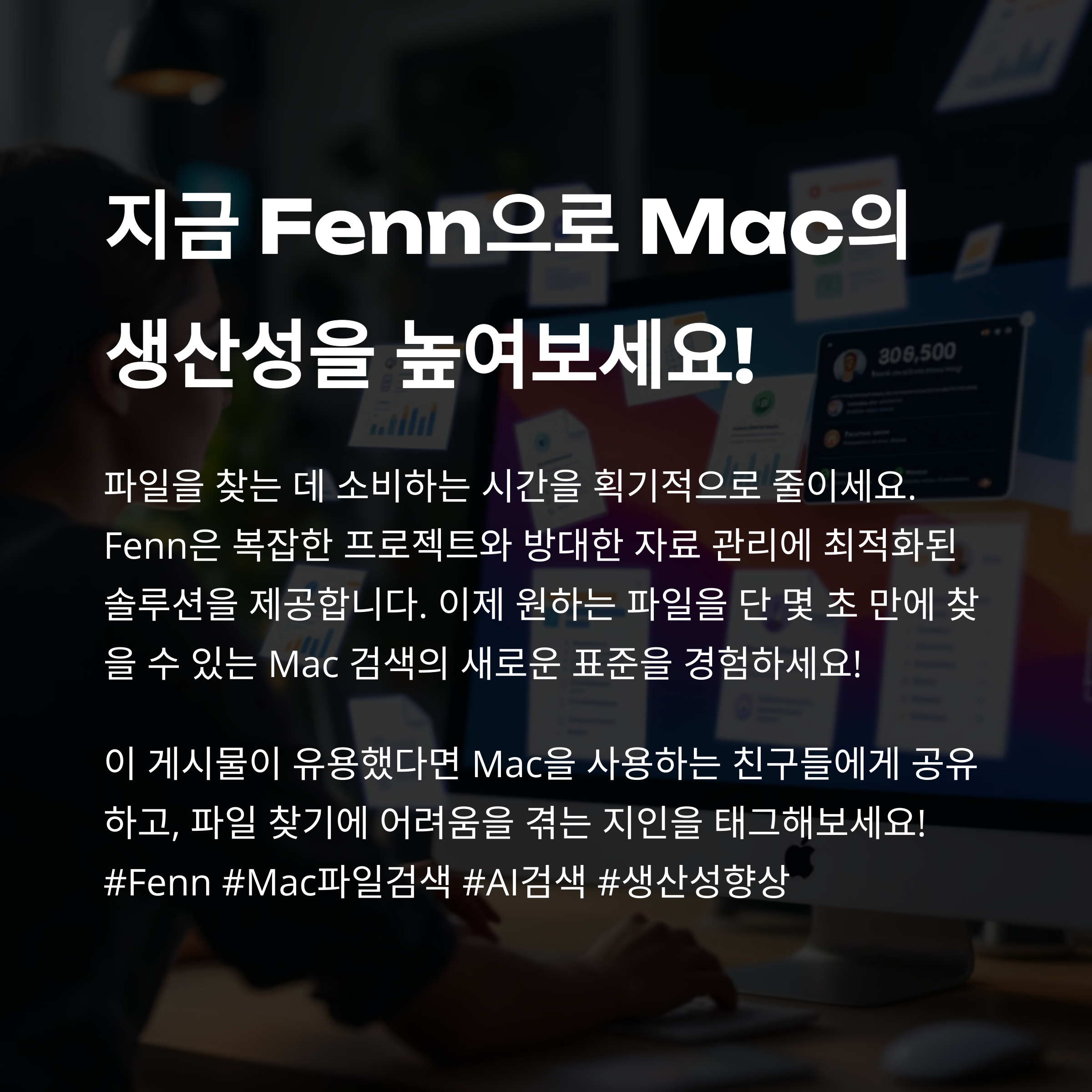 지금까지 Fenn이라는 놀라운 도구에 대해 함께 알아봤는데요, 정말 한 번 써보면 손에서 놓을 수가 없습니다. 맥북 속에서 숨어 있는 파일들을 쏙쏙 찾아주는 느낌이랄까요? 특히 저처럼 매일 수십 개의 파일을 다루는 분들께는 단연 추천입니다. 생산성을 높이는 방법은 여러 가지가 있지만, 그 중에서도 '검색'이 이렇게 강력할 줄은 몰랐어요. 여러분도 지금 바로 Fenn을 설치해서 그 변화를 직접 경험해보세요. 그리고 사용해보신 느낌도 댓글로 꼭 공유해주세요. 우리 같이 더 똑똑하게, 더 효율적으로 일해봐요!