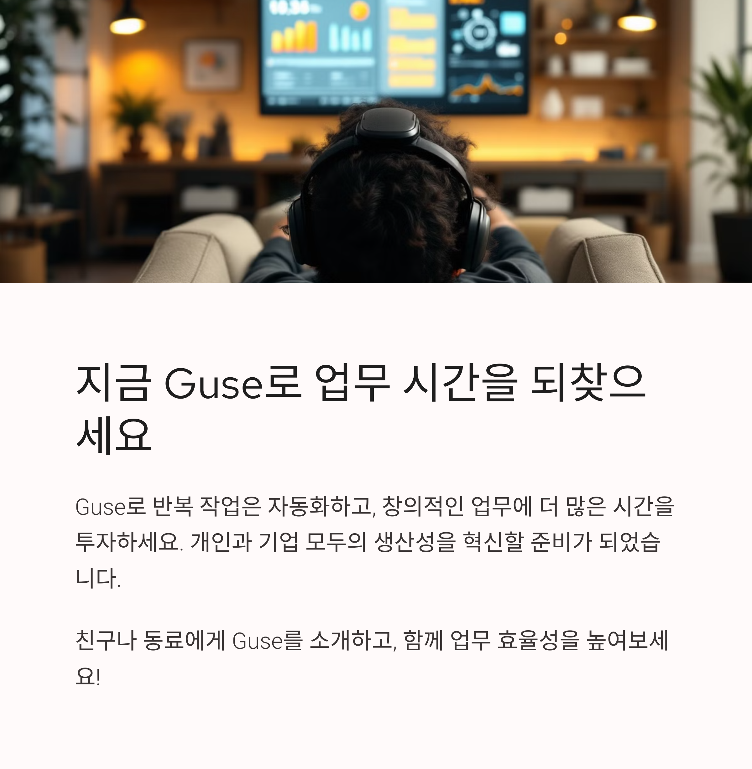 단순한 자동화를 넘어서, 이제는 Guse로 스마트한 워크플로우를 경험하세요!