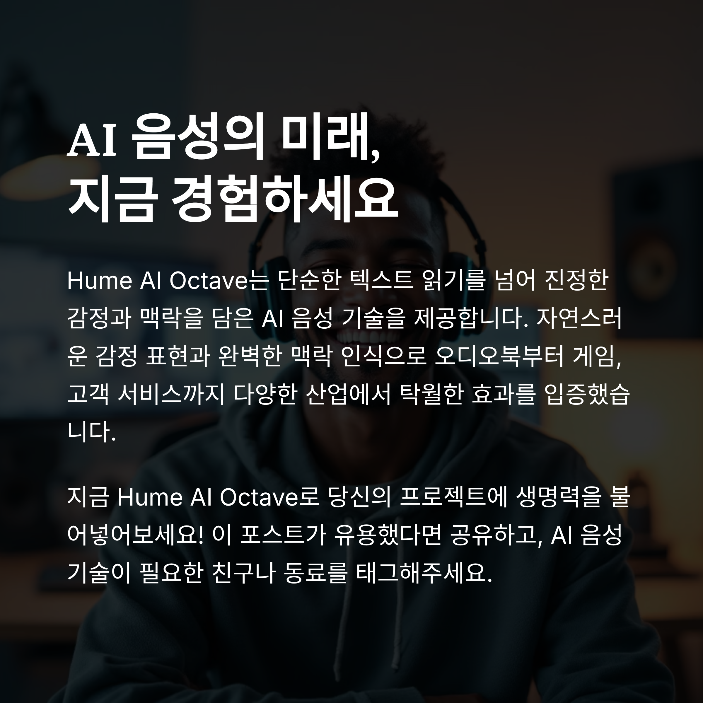 AI 음성 기술이 여기까지 왔다는 사실, 여러분은 믿기시나요? 저는 Octave를 처음 접했을 때 정말 놀랐어요. 이젠 텍스트만 던져주면 감정까지 담아서 이야기해주는 시대가 된 거예요. 콘텐츠 크리에이터든, 개발자든, 고객 응대가 필요한 기업이든 Octave는 누구에게나 유용한 도구가 될 수 있습니다. 감정이 실린 목소리로 더 풍부한 소통을 원하신다면, 지금 바로 Octave를 경험해보세요. 그리고 여러분의 생각은 어떠셨나요? 댓글로 공유해주시면 더 깊은 이야기도 함께 나눠보고 싶어요!