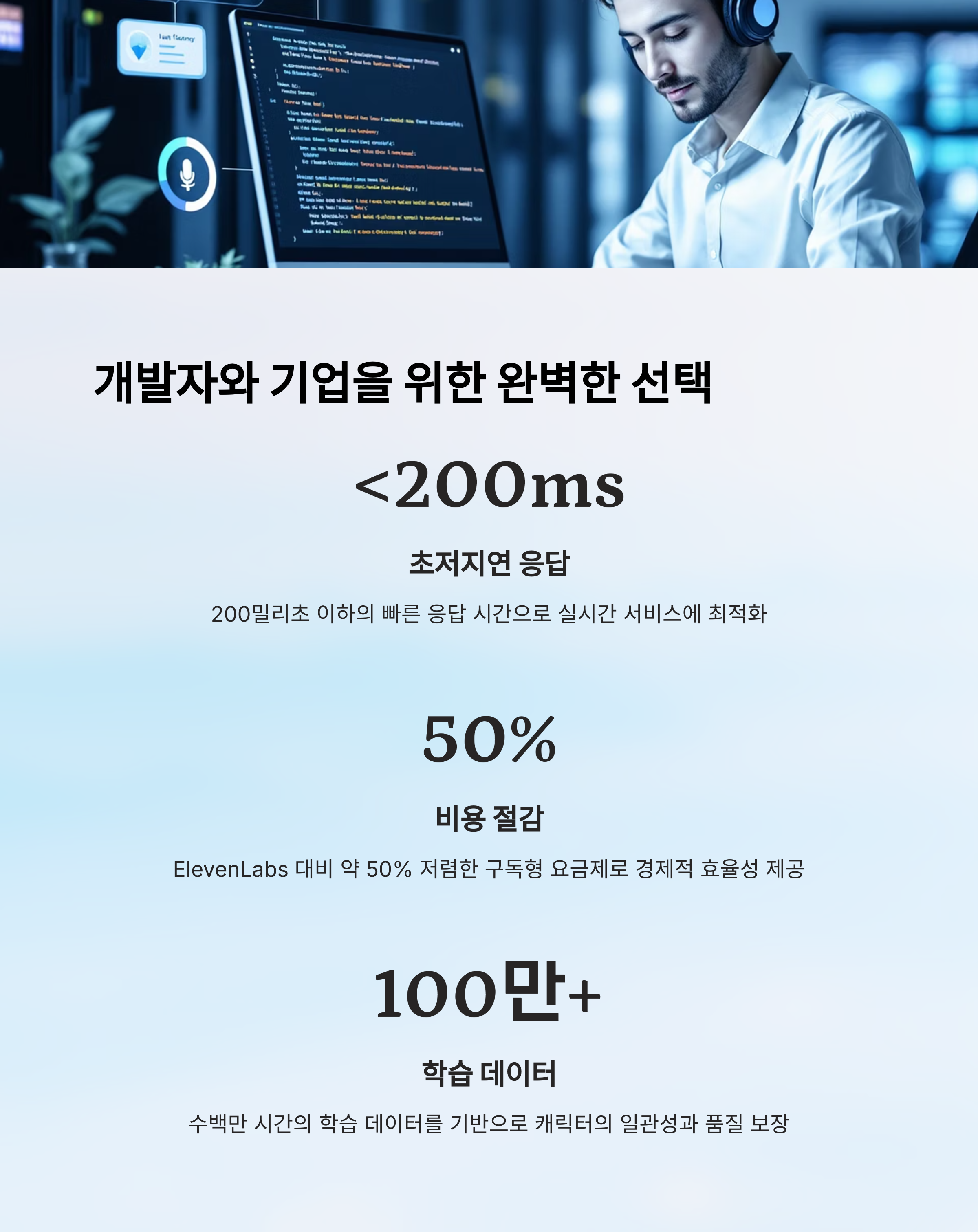 | 낮은 지연 시간 | 200ms 이하 응답으로 실시간 사용에 적합 |
