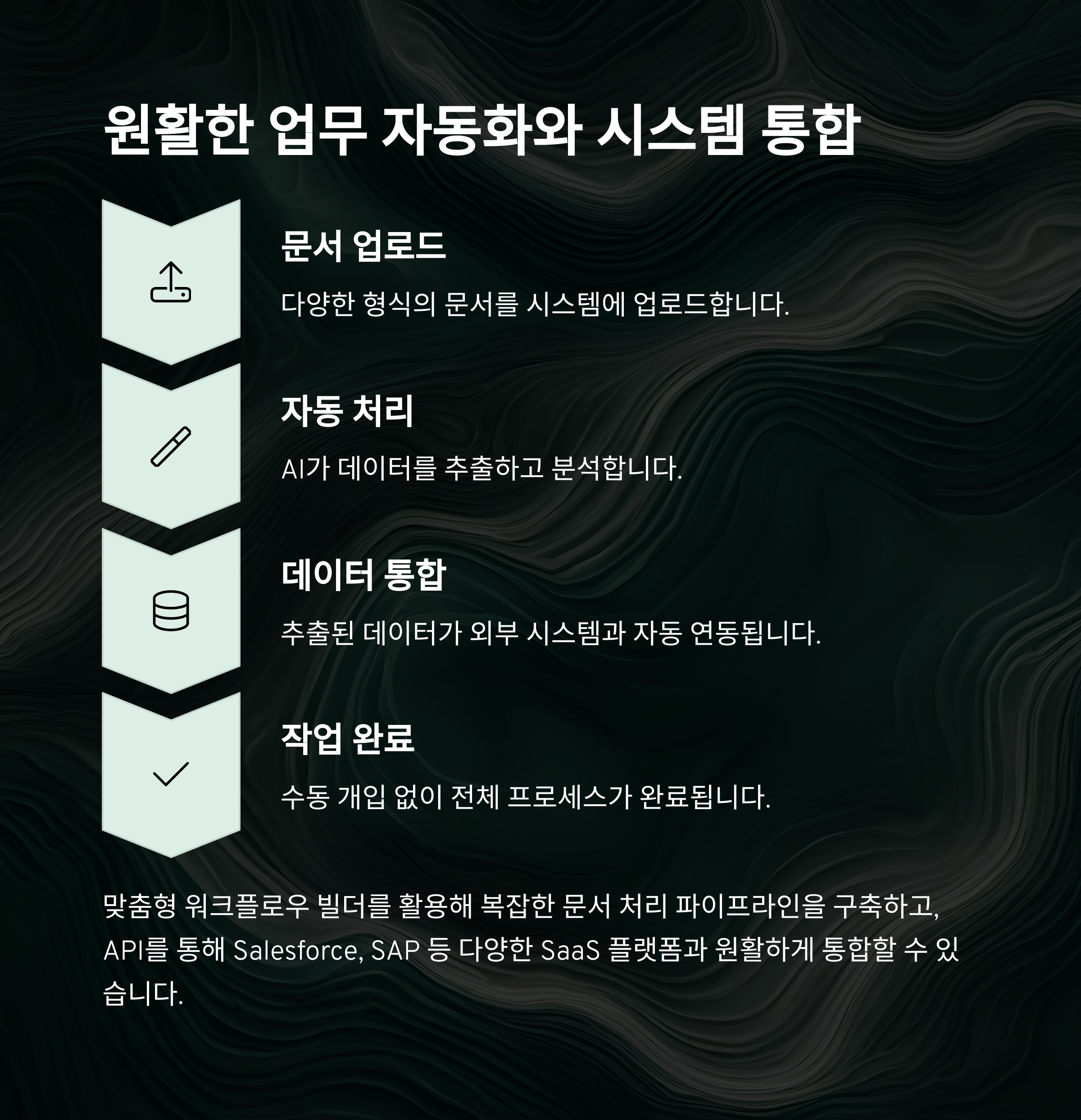 | 시각적 워크플로우 빌더 | 개발 지식 없이도 AI 추출 프로세스를 직접 구성 |