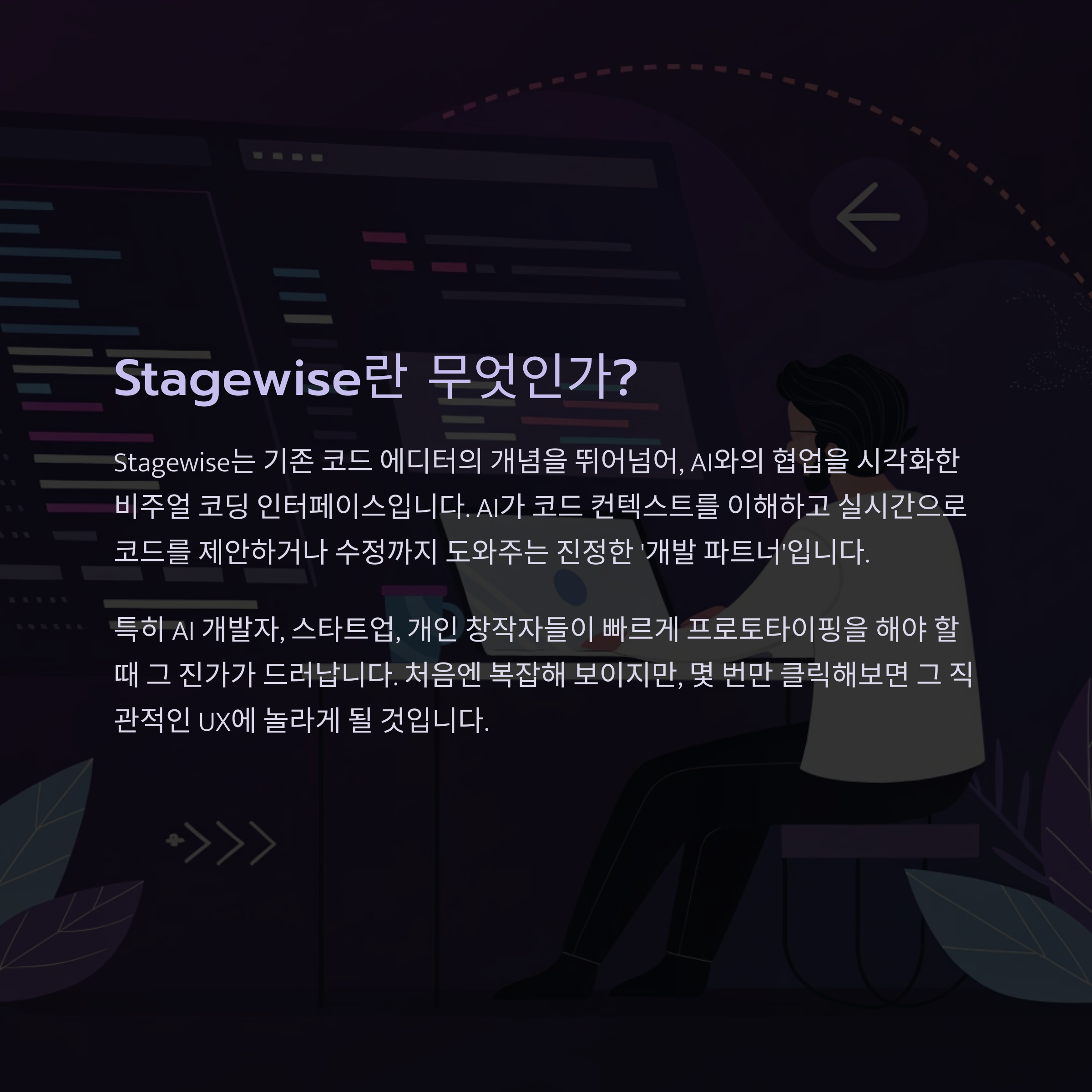 지금, AI와 함께하는 '비주얼 코딩' 시대가 열렸습니다. 단순한 자동화를 넘어 창의적 개발까지, Stagewise가 그 중심에 있습니다.