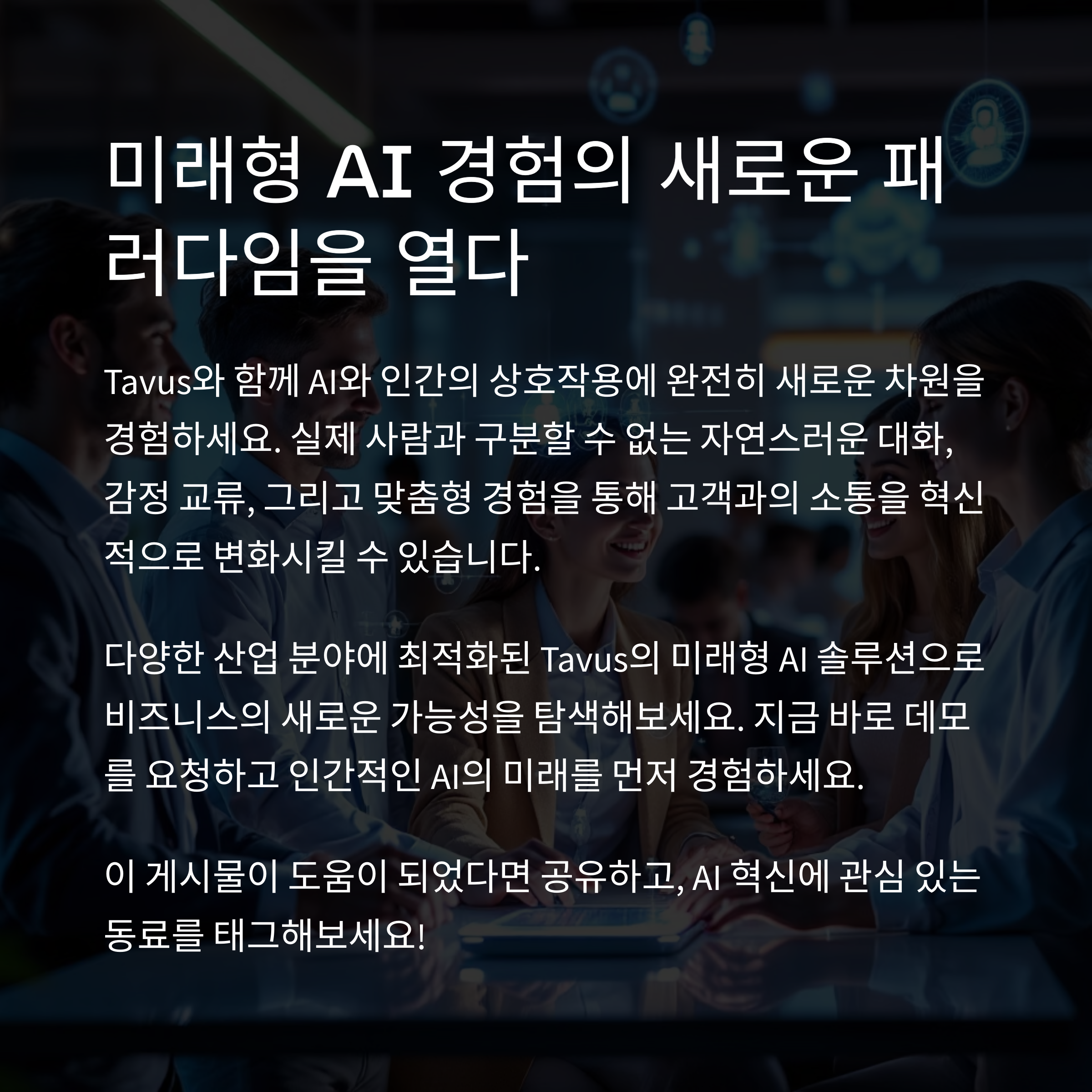 Tavus AI는 단순한 기술 도구가 아닌, 인간과 기술 사이의 진정한 연결고리입니다. 감정이 느껴지고, 시선을 마주치며, 말을 주고받는 그 순간… 마치 화면 너머에 진짜 사람이 있는 듯한 기분이 들죠. 이게 바로 Tavus의 매력 아닐까요? 앞으로도 AI와의 소통 방식이 어떻게 진화할지, 무척 기대되네요. 혹시 여러분도 Tavus와 직접 대화해보고 싶지 않으신가요? 😊 댓글로 여러분의 생각을 들려주세요!