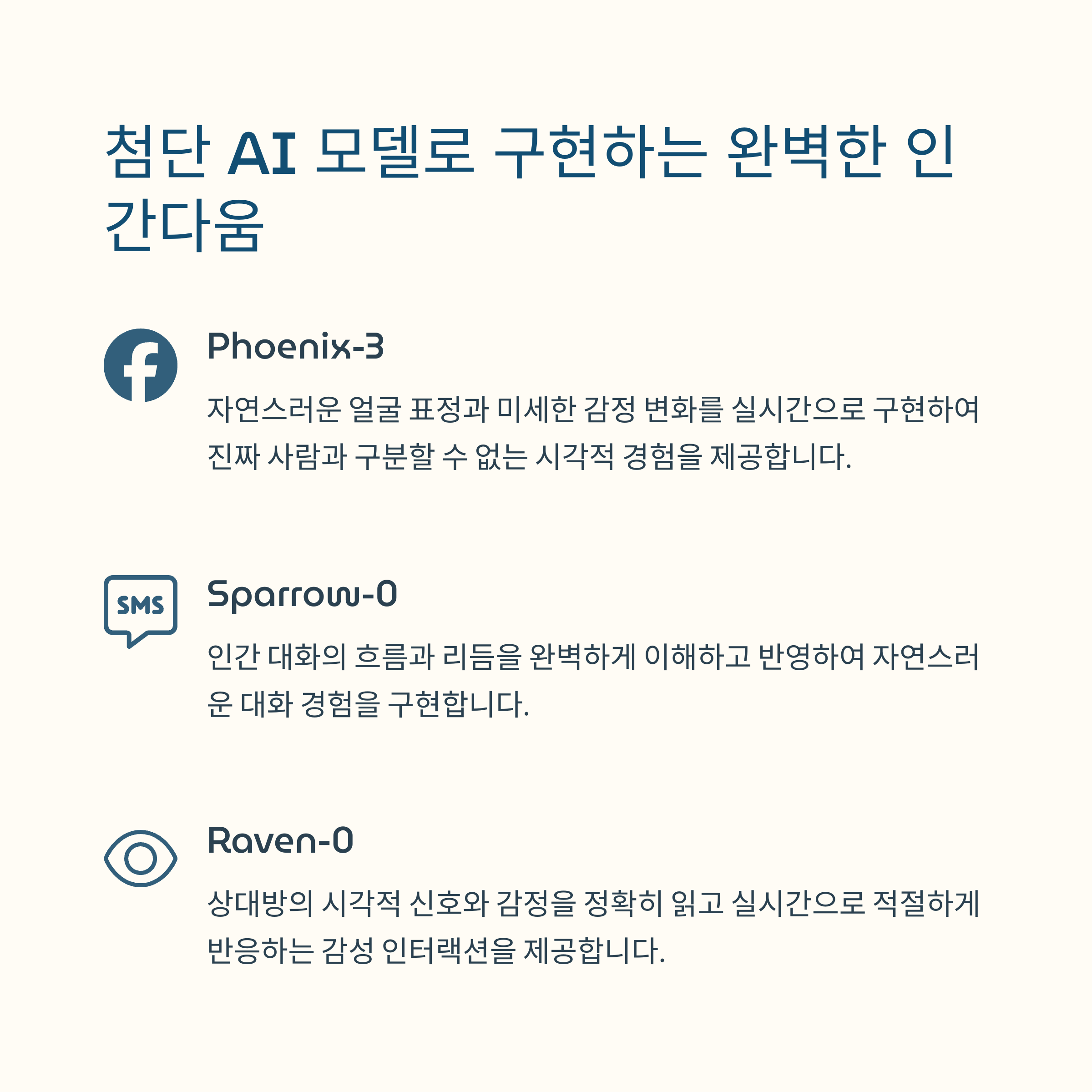 | 실시간 감정 표현 | AI가 얼굴 표정과 억양을 조절해 사람처럼 반응 |