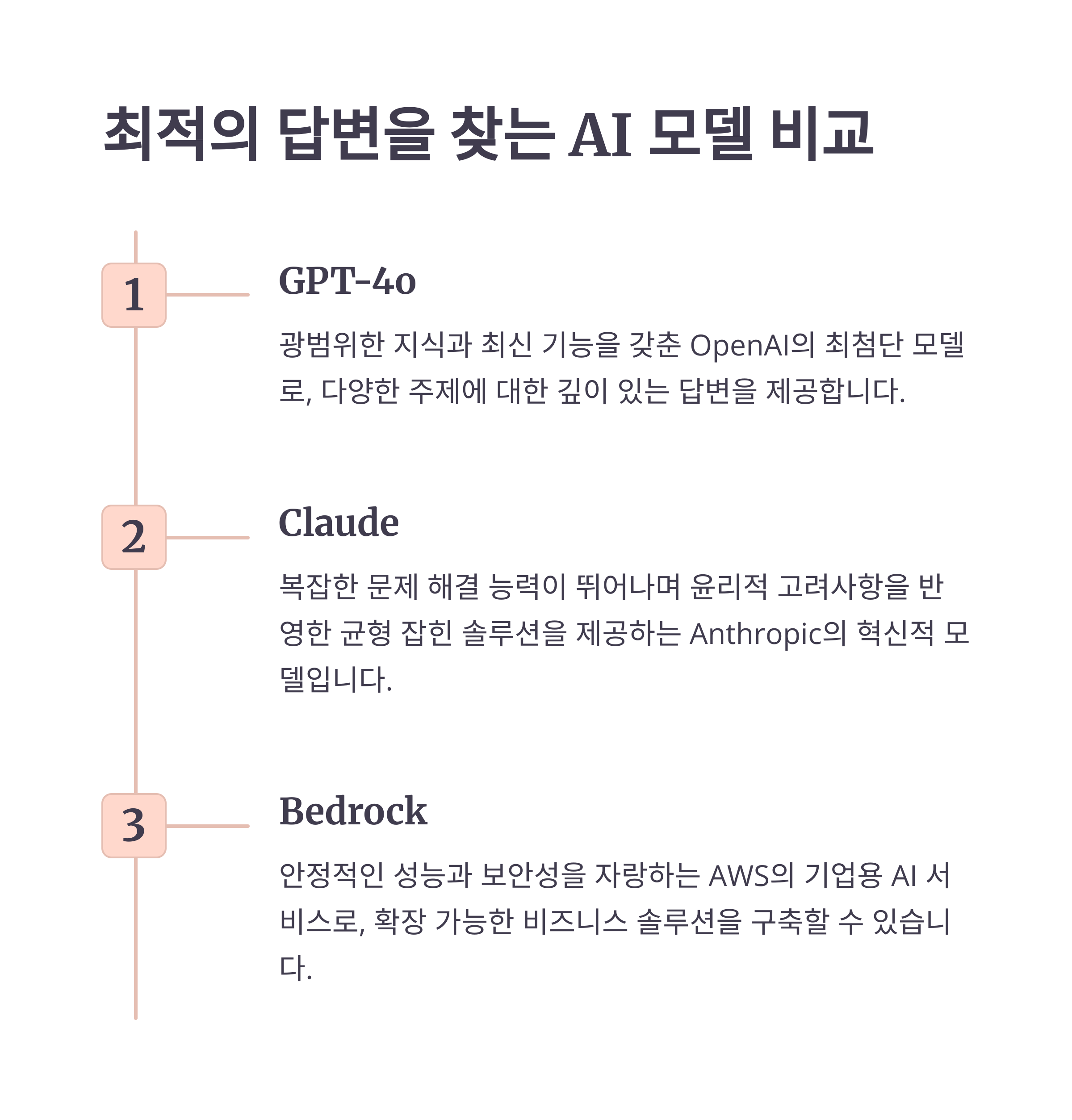 예, 같은 질문을 여러 모델에 동시에 적용해 답변을 나란히 비교할 수 있어, 최적의 솔루션을 찾는 데 유용합니다.